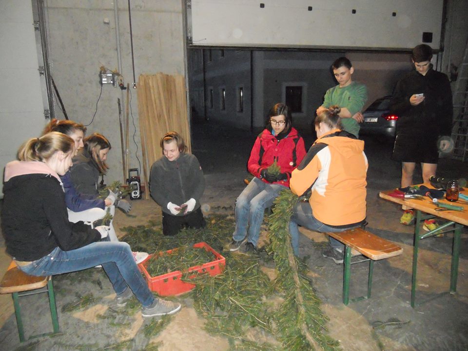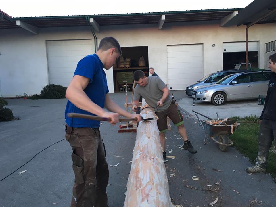 Damit es zu einen Maibaum zustande kommt, gibt es einige Vorbereitungen zu erledigen, wie das Maibaum umschneiden, Kränze binden, Maibaum entrinden.
