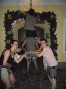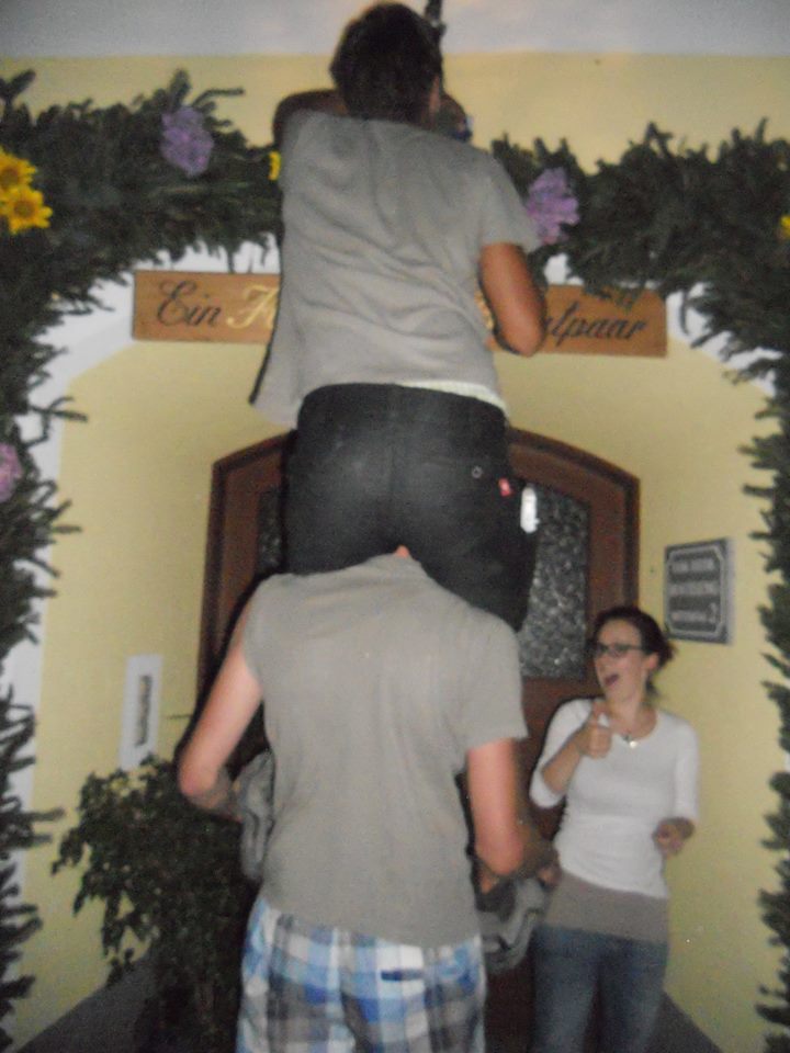 Auch das Schwellbogen binden für das Brautpaar Ingrid & Hubert darf nicht zu kurz kommen.