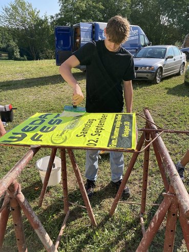 Die Straßentafeln fürs Wedafest wurden wieder neu beklebt.